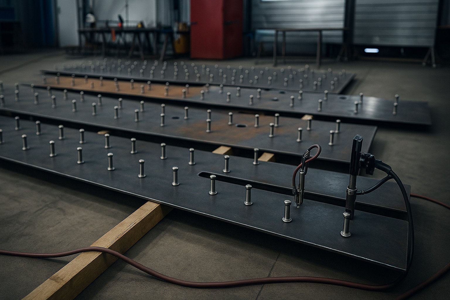 Muestras reales de StudWelding, conectores y placas de desgaste.